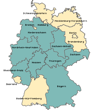 Bisher wurden bzw. werden Vorhaben in den türkis gekennzeichneten Bundesländern betreut: